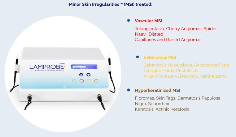 With the Lamprobe, we can quickly and effectively treat a wide variety of minor skin irregularities including the following ailments: